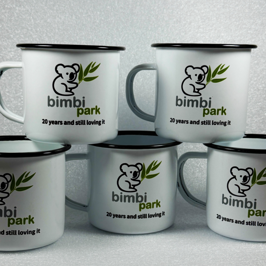 Whether you’re enjoying your morning brew at the campsite or taking a piece of Bimbi Park home, these enamel mugs are a practical and timeless reminder of your stay in the Otways.
