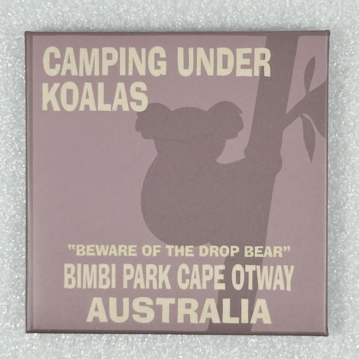 | Design | Camping Under Koalas – Beware of the Drop Bear, Camping Under Koalas – They Snore Louder Than You, Mum Said We Couldn't Get a Pet, Nature’s Alarm Clock, Explore the Otways, Experience the Outback, Greetings from Bimbi Park, Wake Up With Koalas, Where the Kookaburras Laugh – and Kick Your Food, You’re On Echidna Time Now |